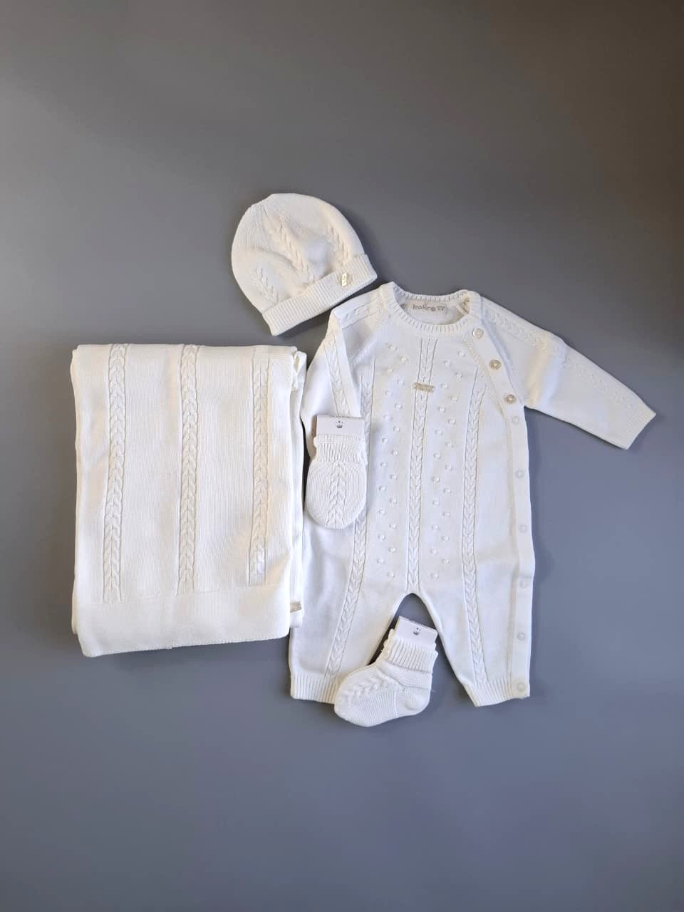 Wrap your little one in pure comfort and indulgence with our luxurious Merino wool baby set. This carefully crafted set includes a hat, gloves, socks, a blanket, and a onesie, all made from 100% Merino wool, known for its softness and premium quality. Specially designed to provide warmth while remaining light and breathable, it’s perfect for keeping your baby cozy in any season.